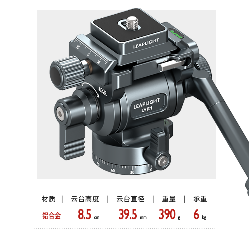 Leaplight Force Pullet Full Metal Aluminum Alloy Hydraulic Tripod Head Double Panorama Multifunction Micro Single Counter Camera Phone Videography Professional Photography Outdoor handle damping tripod head portable tripod-Taob