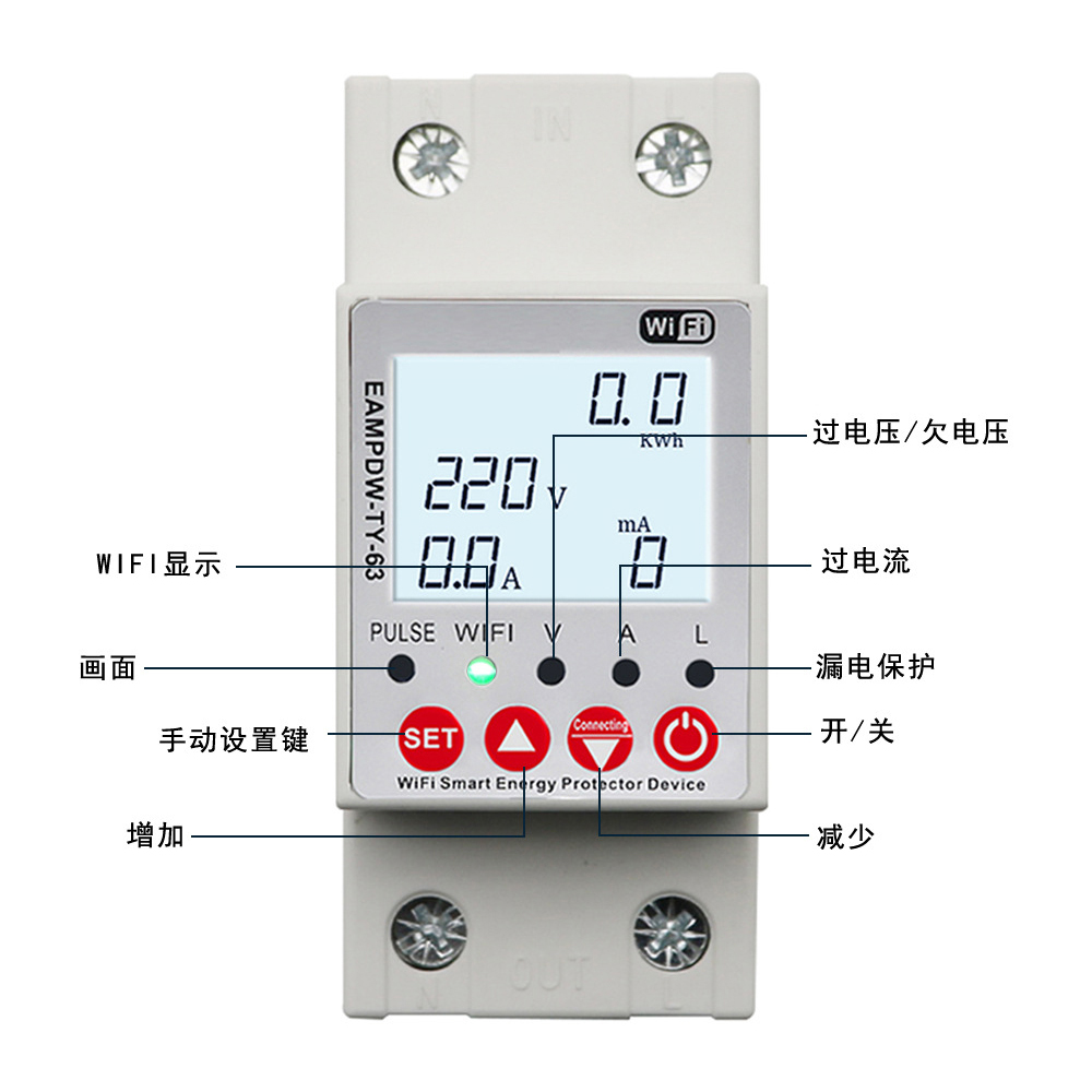 WiFi Intelligent Circuit Earth Leakage Over Undervoltage Protector Relay Voltage Current Gauge 2P 63A Graffiti APP-Taobao