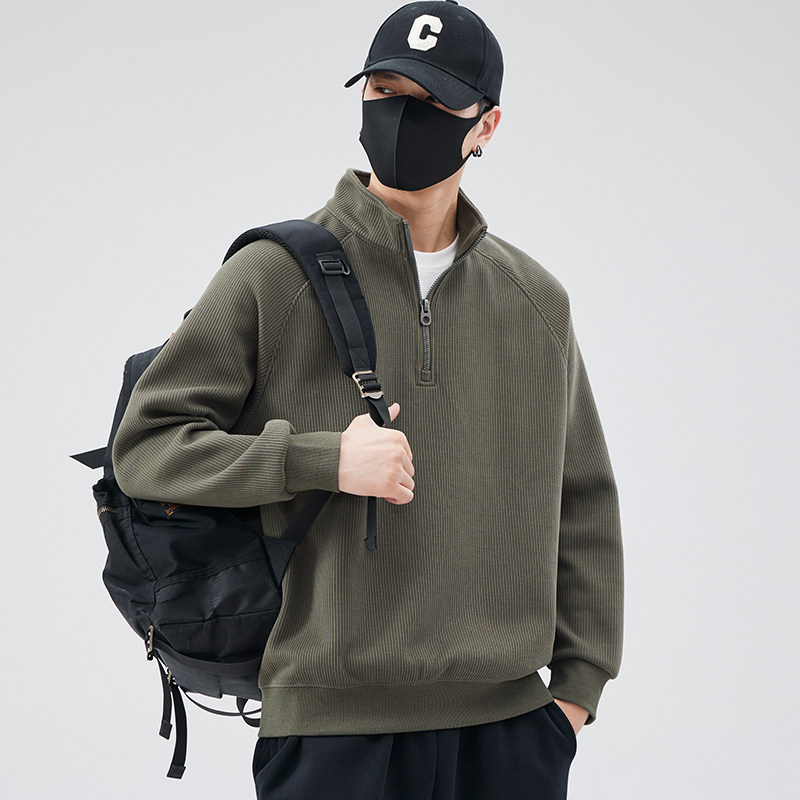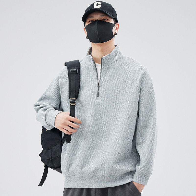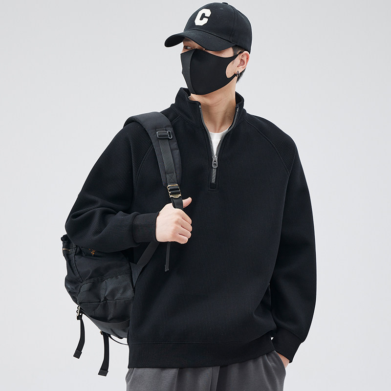 Gush thicken half zipped sweatshirt male spring autumn loose 2023 autumn winter new boarder set head slats bottom jersey-Taobao
