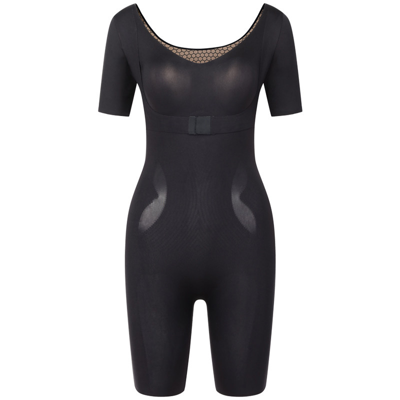 Short sleeve plastic body dress with a buttonhole to the chest