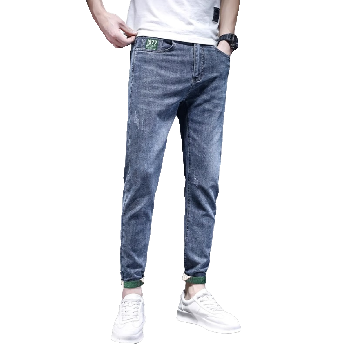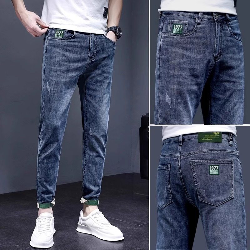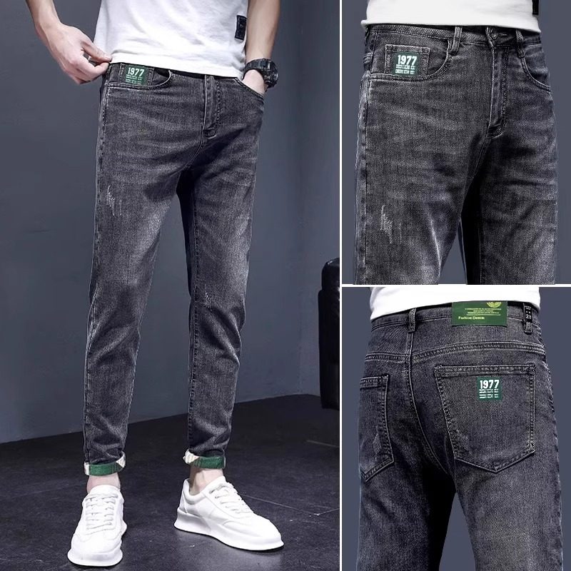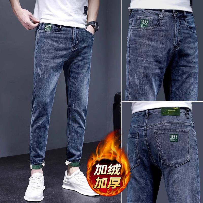 2023 autumn and winter style jeans men plus suede thickened body small foot pants winter tide card elastic casual long pants-Taobao
