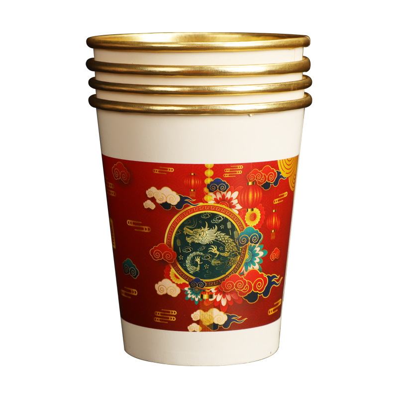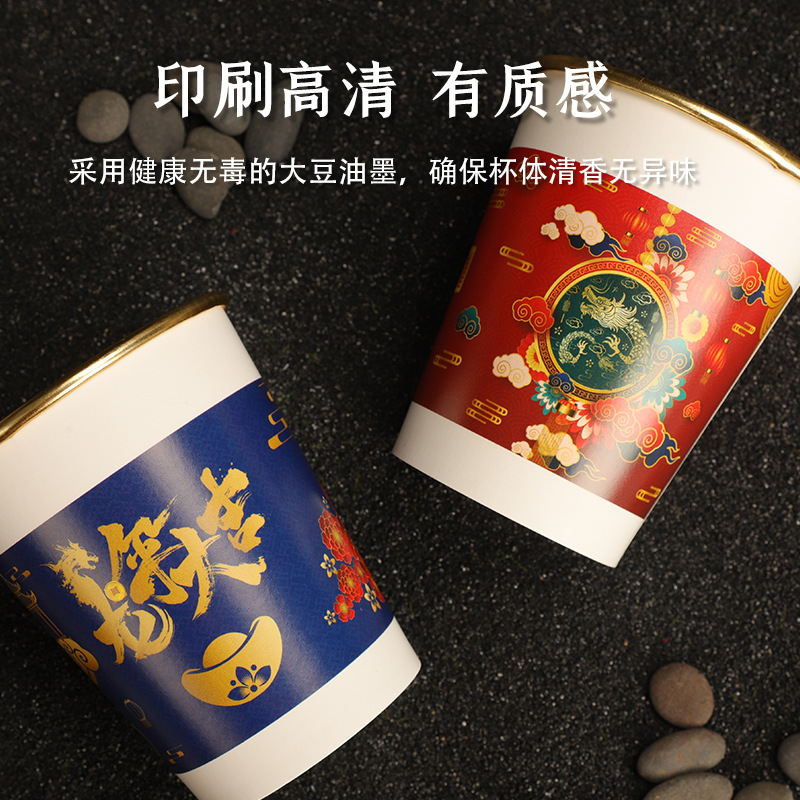 Disposable dragon year paper cups 2024 Chinese New Year gold foil thickened customized commercial drinking tea cups Home New Year Water drinking cups-Taobao