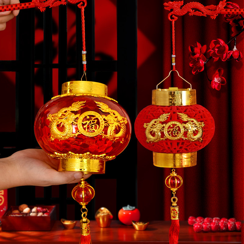 2024 Chinese New Year Xiao Long lantern New Year Luminous Hand Children Small Lanterns for Spring Festival Crystal Projection Palace Lantern Decoration-Taobao