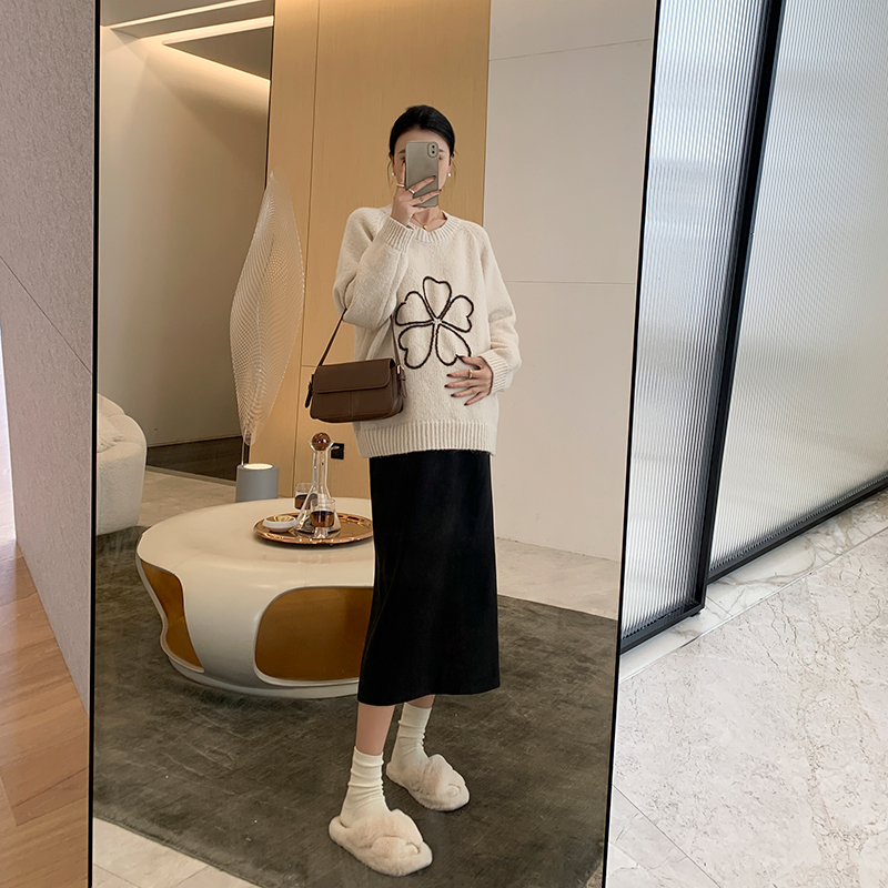 ZMA Pregnant Women's Dress Suit Autumn Winter Trendy Foreign Air Wear Hitch Winter 2023 New Sweater Two Sets-Taobao