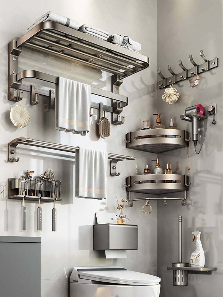 Bathroom wall-mounted towel rack integrated free of punch toilet toilet toilet shelf bath towel rack bathroom-Taobao