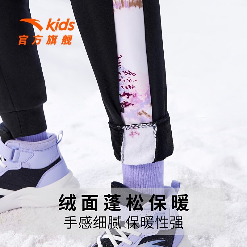 (Mall same section) Antread girl pants 2023 autumn winter new plus suede warm sports pants Outdoor casual pants-Taobao