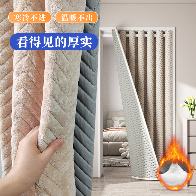 Cotton door blinds winter warm windproof anti-cold and anti-punch for home bedroom Kitchen Air Conditioning Wind-Proof Insulation Partition Thickening-Taobao