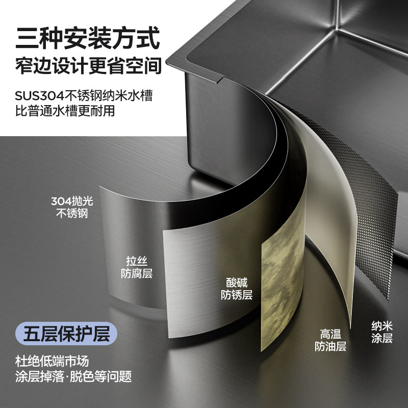 Platinum Ya 990 Kitchen Wash basin 304 stainless steel nanosink Large single trough the basin Home Thickened Dishwashing Pool-Taobao