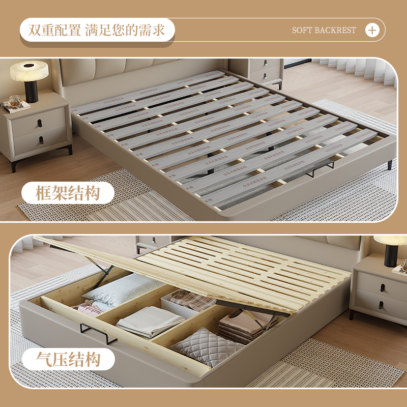 Willy-style Light Lavish Genuine Leather Bed Master Bedroom size family Double bed 1 m 8 Wedding bed Modern minimalist storage Soft foreskin bed-Taobao