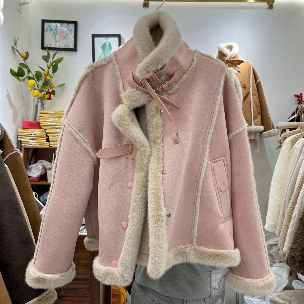 Advanced Sensory collar Locomotive Suit Jacket Woman 2023 Winter Garvelled Thickened Fur integrated lamb fur foreign air blouses-Taobao