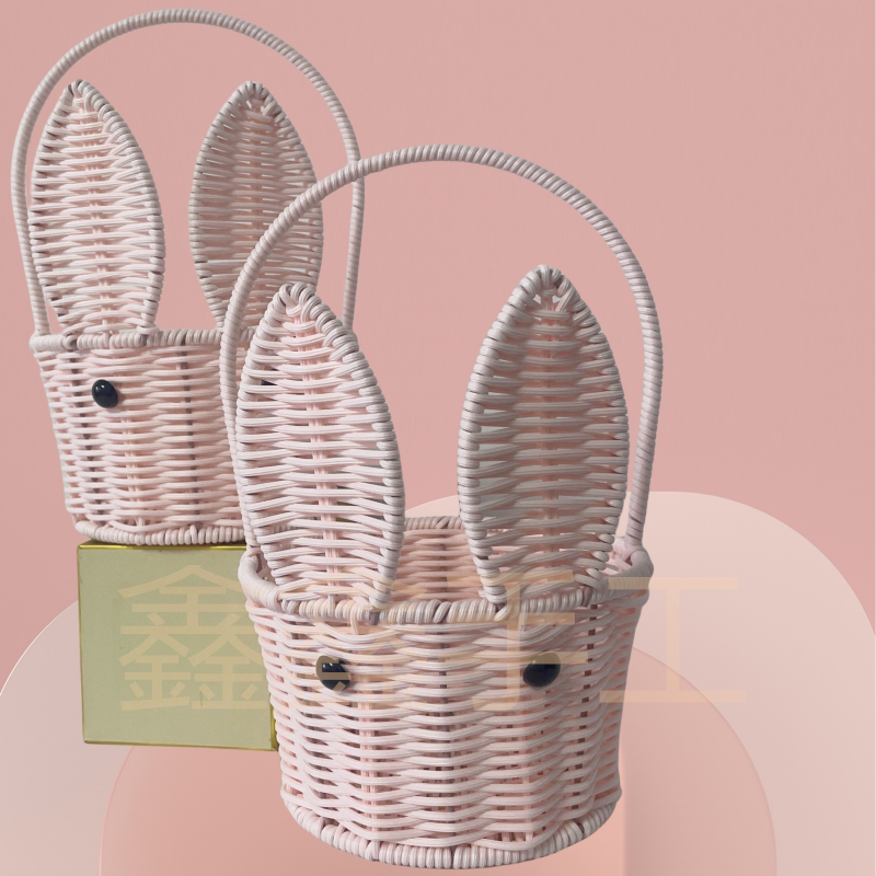 Pink Rabbit Mention Basket Tea Color Hand Basket Rabbit Tea Color Hand Basket Pig