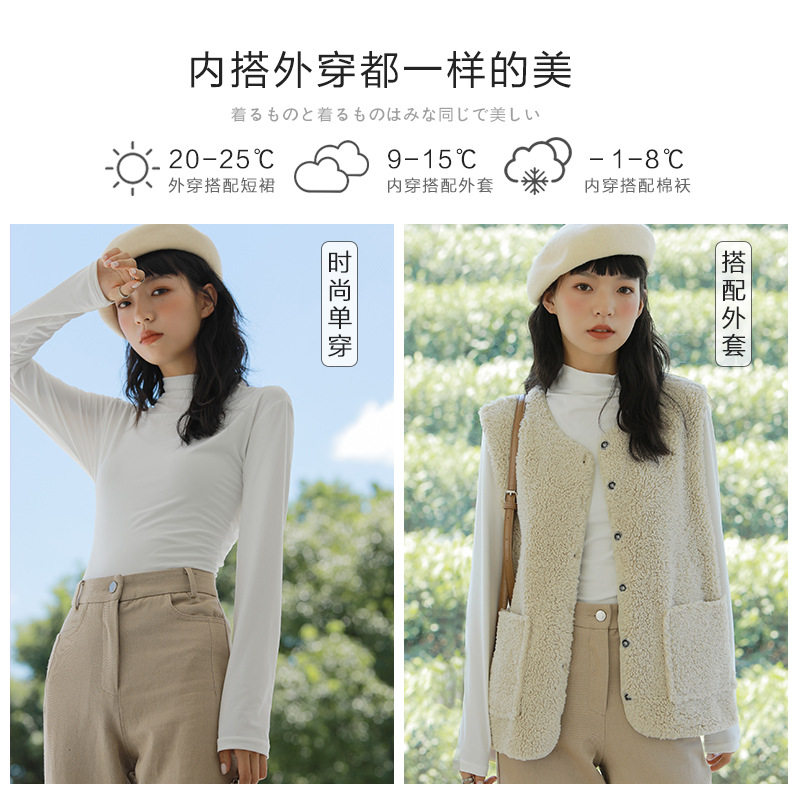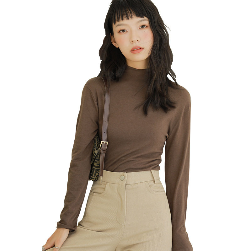 Milk Suede Undershirt Semi-High Collar Woman Autumn Winter Hit Undercoat Korean Version Inner Lap Elastic Face Mask T-Shirt Long Sleeve Blouse-Taobao