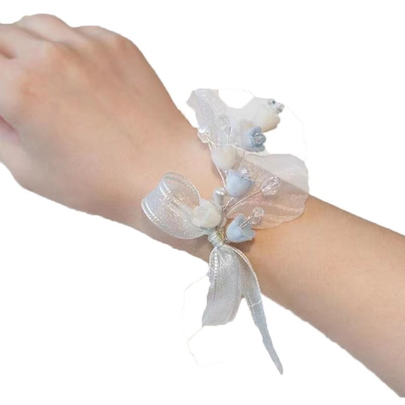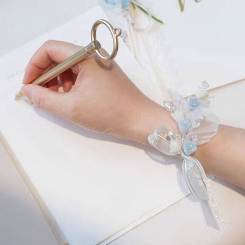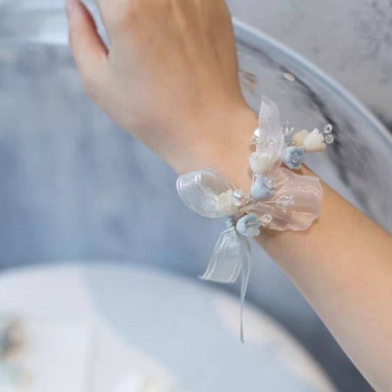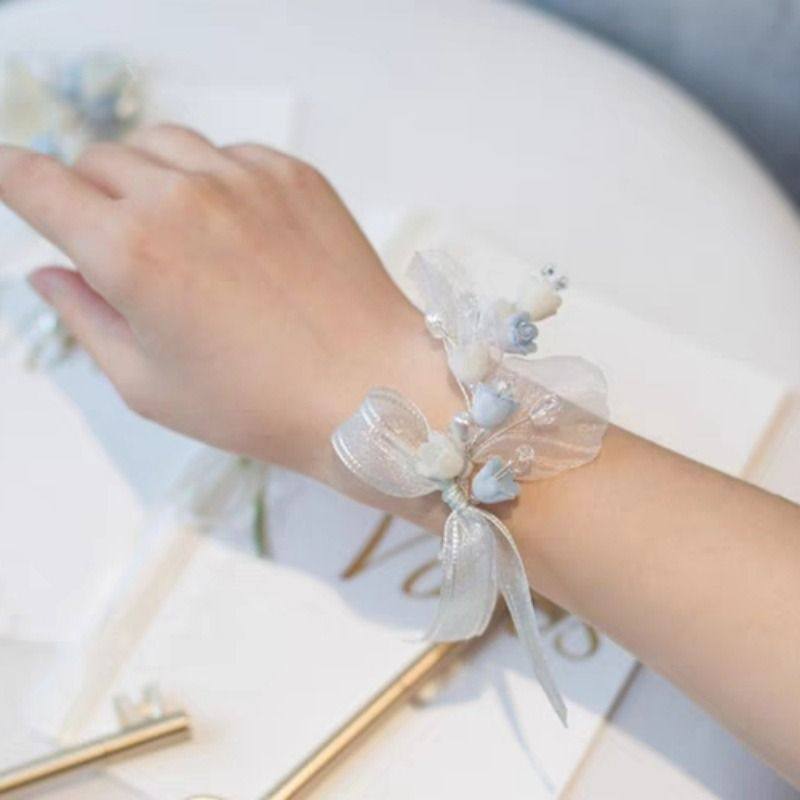 Green Bloom Original New Product Wedding Bride Wrist Flower Bridesmaid Bracelet Groom Brooch Bridegroom Brooch Blue White-Taobao