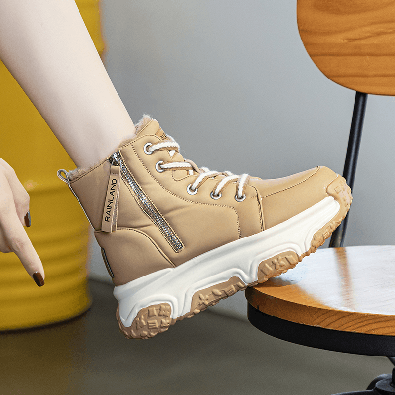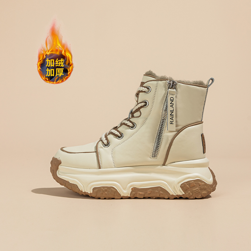 Rain and earth thick bottom heightening help small white shoes women 2023 autumn and winter new exploits genuine leather plus suede casual light old daddy's shoes-Taobao