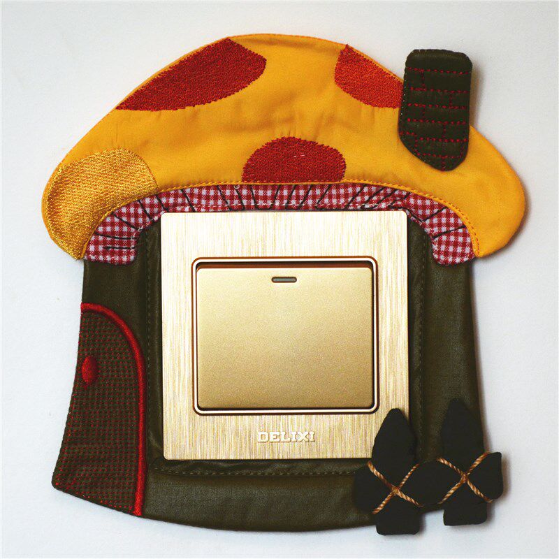 Boutique fabric switch stickers Embroidery switch sets of wall stickers Three-dimensional switch stickers Socket sets of wall fire stickers (mushroom room)
