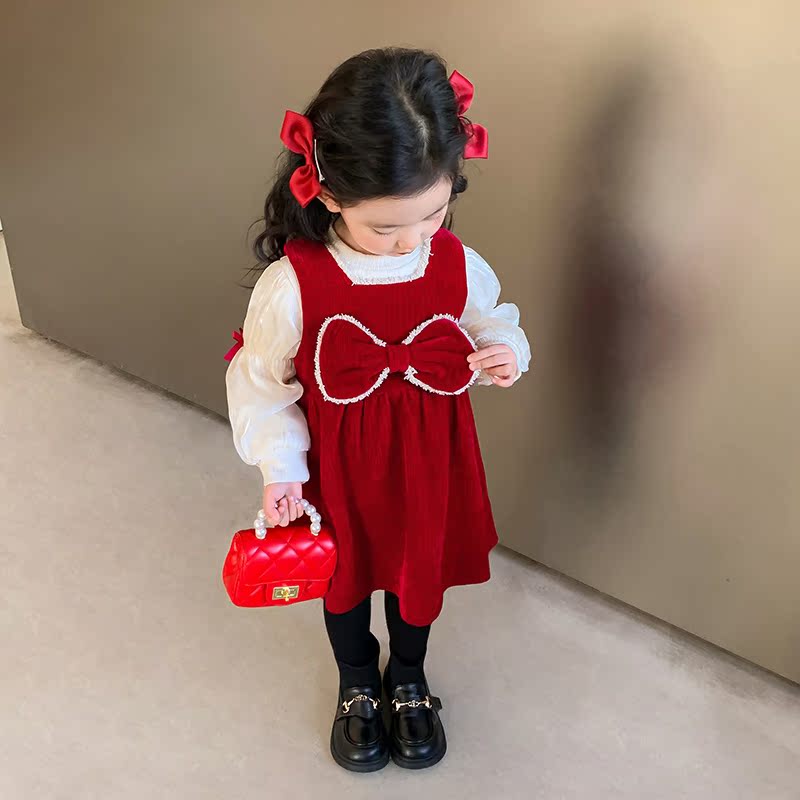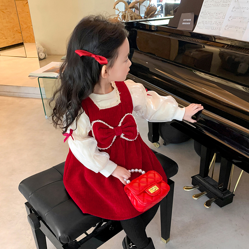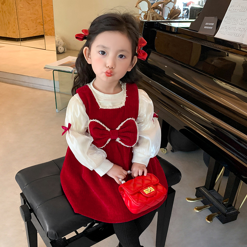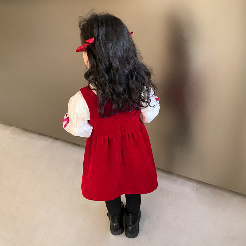 Girl Gushed Dress Dress 2023 New Children Thickened Harness Skirt Suit Women Baby Red Happy to the Year of the Year-Taobao