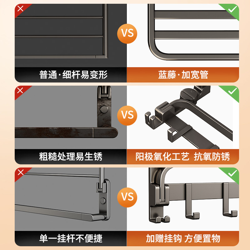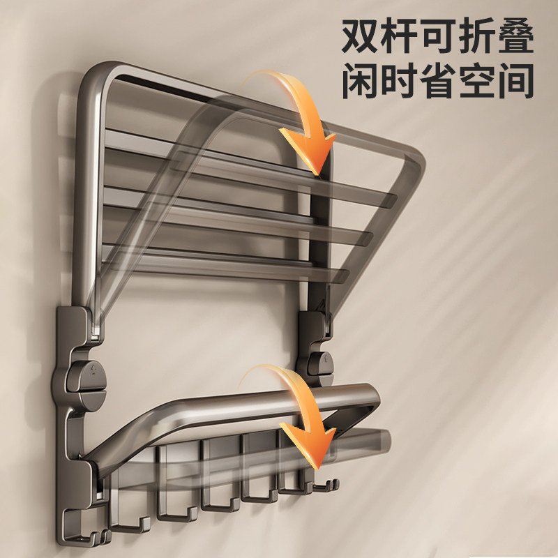 Suction cup folding towel rack toilet free of punching bath towels rack bathroom shelving hook Hook Hanging Pole-Taobao