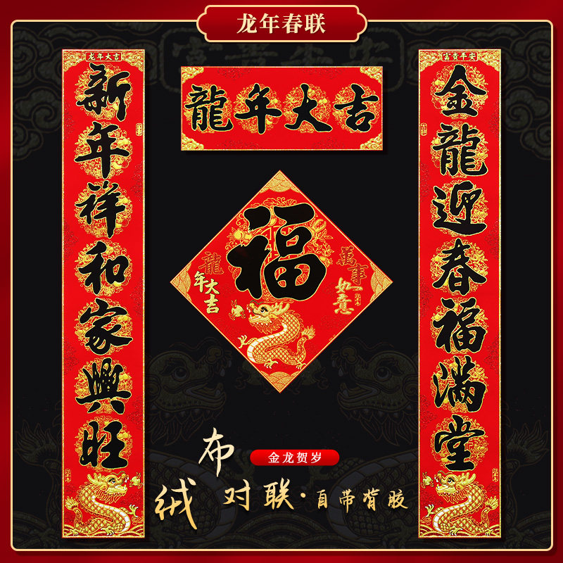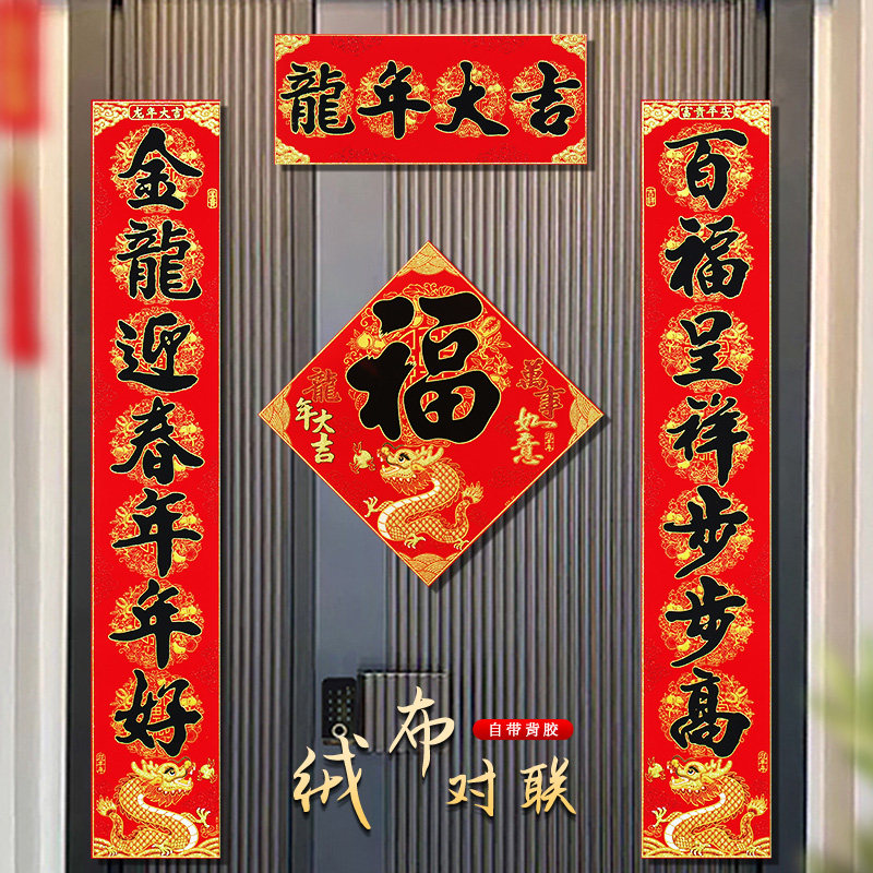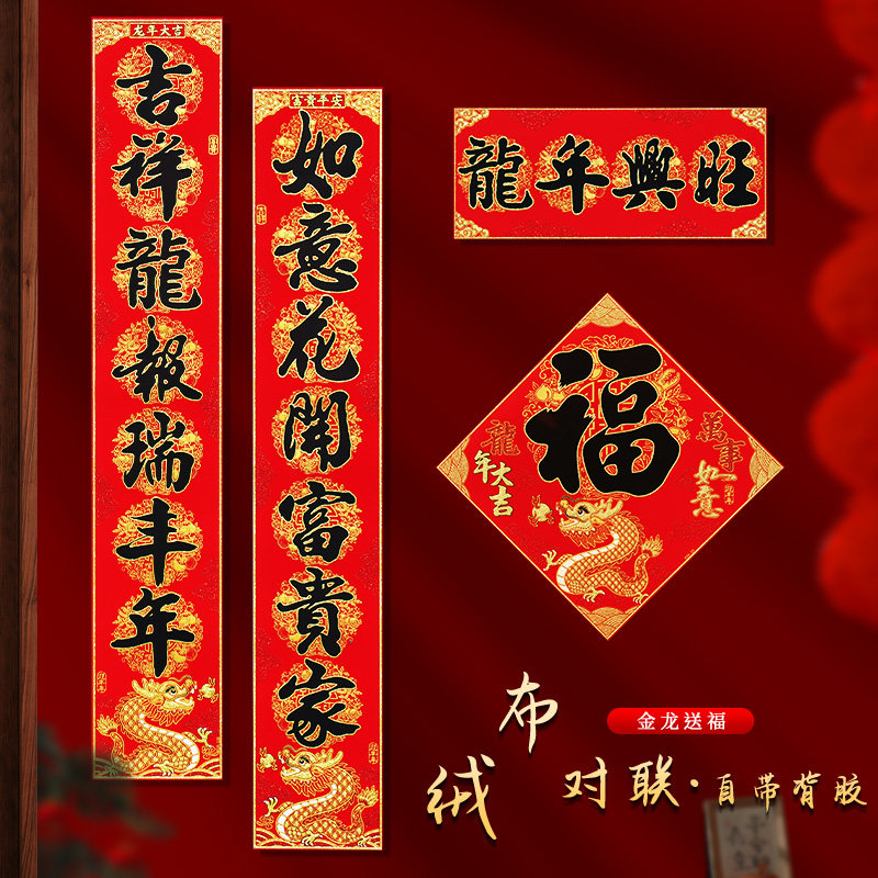 New entrance door self-adhesive suede cloth for 2024 dragon year Chinese New Year's Spring Festival Gate New Year's Eve Home Forwords Spring Festival couplets-Taobao