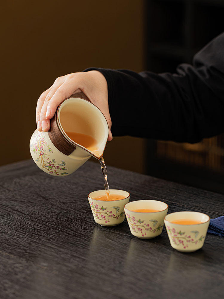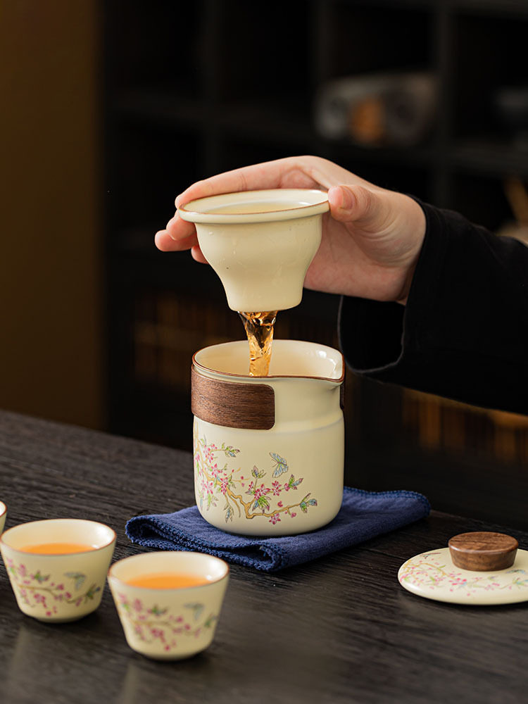 Watch Yunxuan Purple Vine Flowers Travel Tea Set Outdoor Portable One Pot Three Cups Ru Kiln Tea Water Separation Express Guest Cup-Taobao