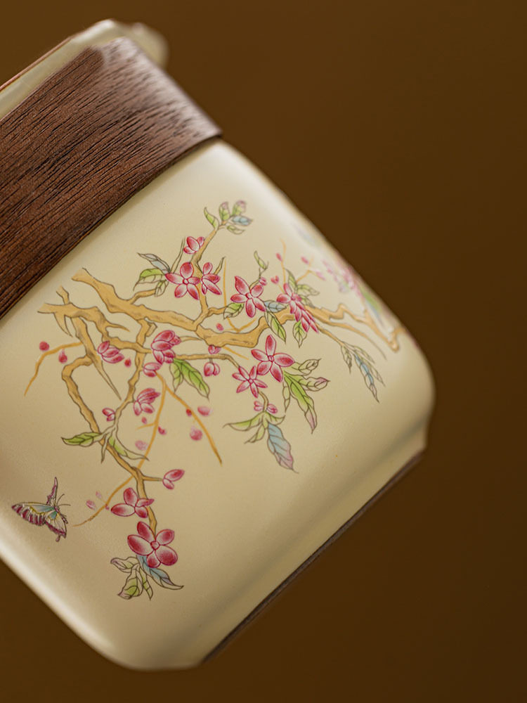 Rice Yellow-Purple Vines Wood Cover Quick Guest Cup