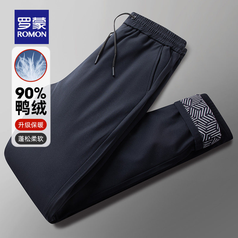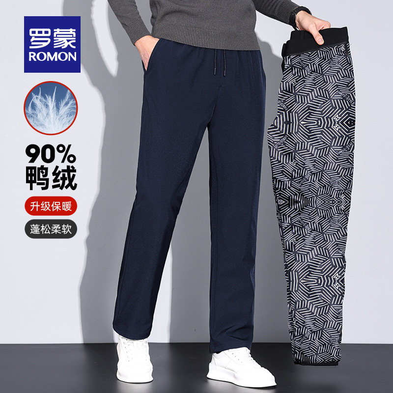 Roemon Men's Warm Straight Barrel Down Pants 2023 Autumn Winter New Tightness Waist Thickness 100 Lap Loose Casual Pants Man-Taobao