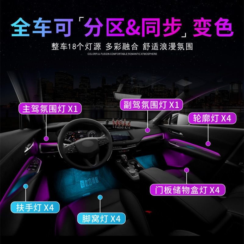 Car special 64 color acrylic LED free threading flow light phantom atmosphere light voice-controlled-Taobao