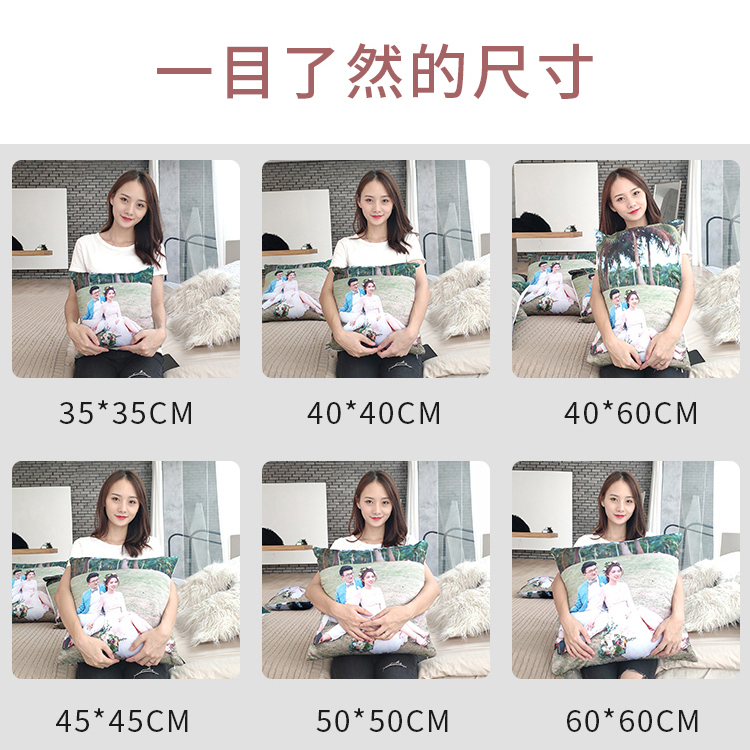 35x35cm Mini (with pillow core) 40x40cm small number (with pillow core) 45x45cm Regular (with pillow core) 60x60cm delivery version (with pillow core) Pillow to be held