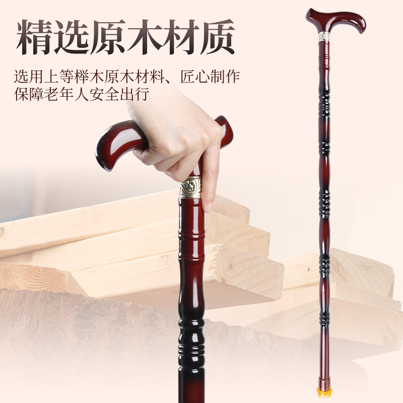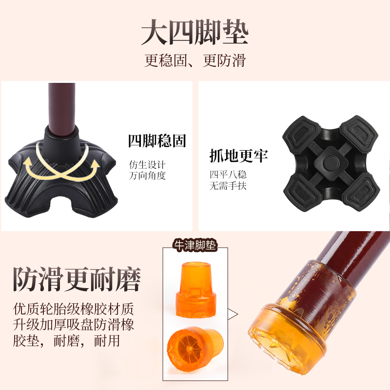 Elderly crutch solid wood Crutch Four Feet Non-slip Wooden Cane Old light Eight-stick handlebar Crutches Armchair Stick-Taobao