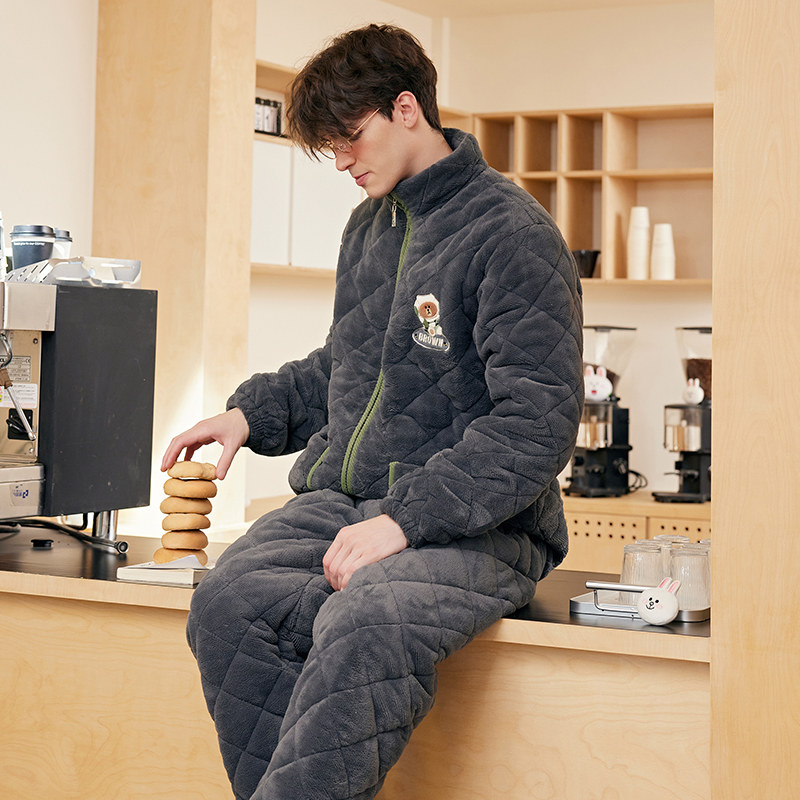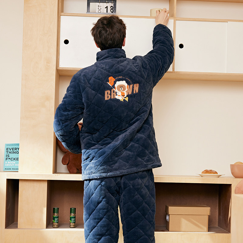 Fenten Triple Layer Thickened Coral Fleece Clip Cotton Pyjamas Male Winter Warm Zipper Upright Collar Anti-static Male Youth Cotton Padded Jacket