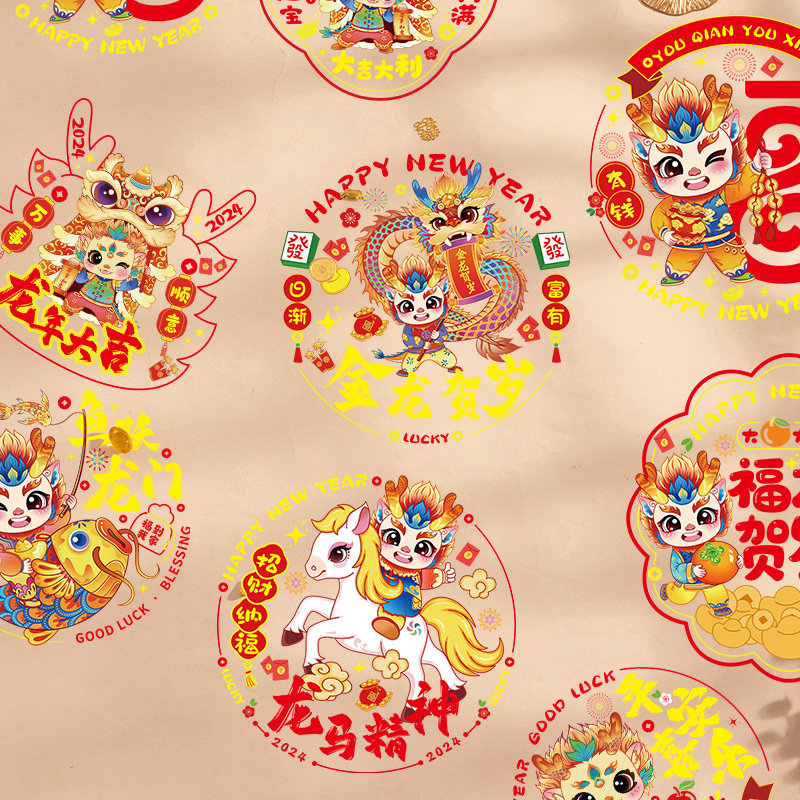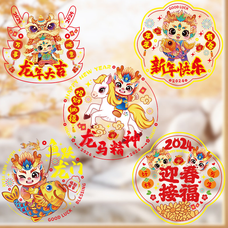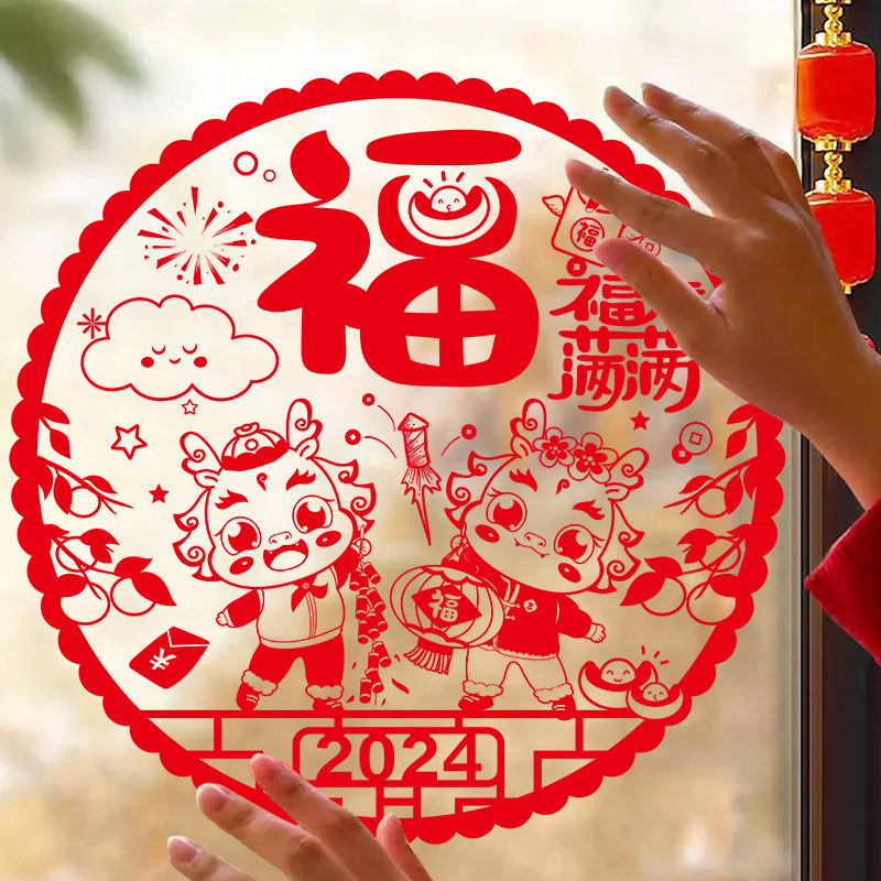 Dragon year window Flower 2024 new static sticker New Year's New Year Chinese New Year decorations Footypal door sticker glass sticker cut paper sticker-Taobao