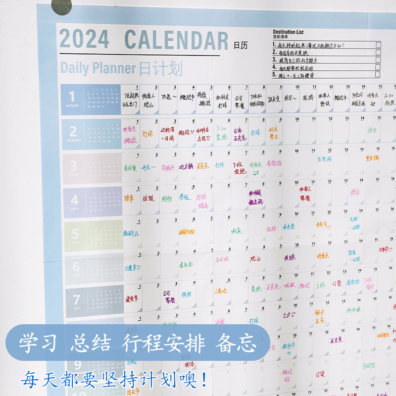 2024 Calendar Plan Table All Year 365 Days Daily Fight Card Wall Sticker Self-discipline Examination Countdown annual calendar form Zhang-Taobao