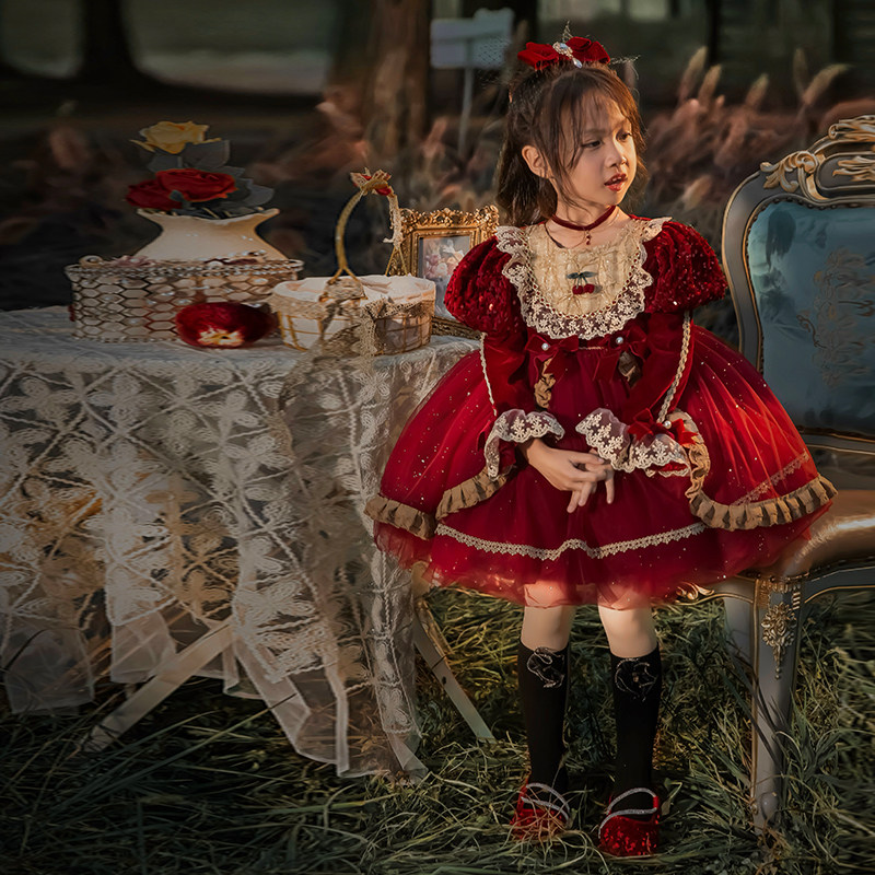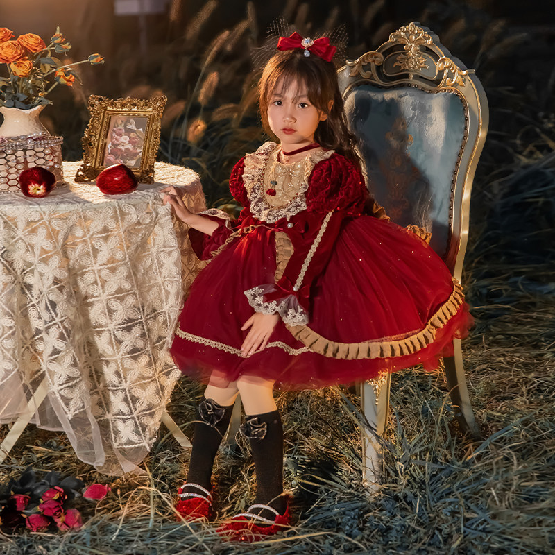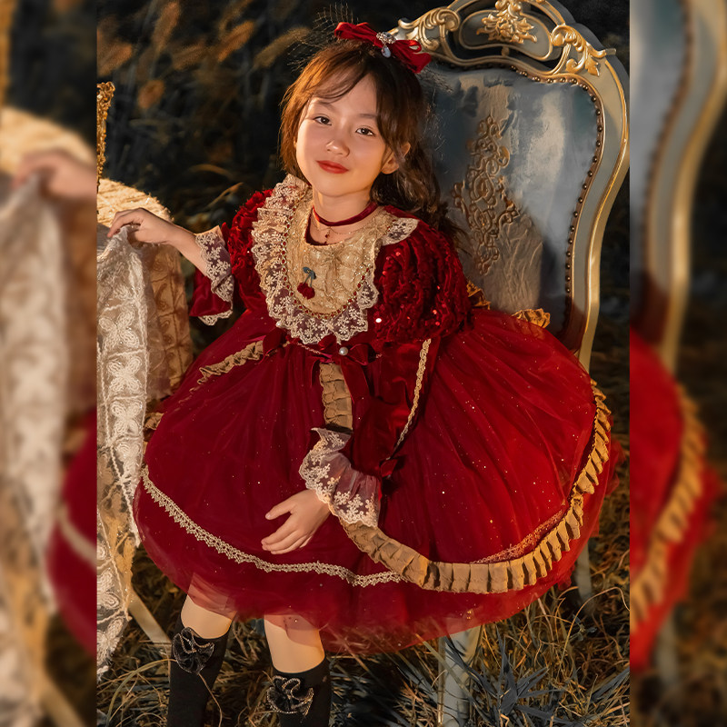 66 Princess Dress Girls Dress Velvet Lolita Skirt 2024 New Style Fashionable Girls Dress Dress Trendy Autumn and Winter