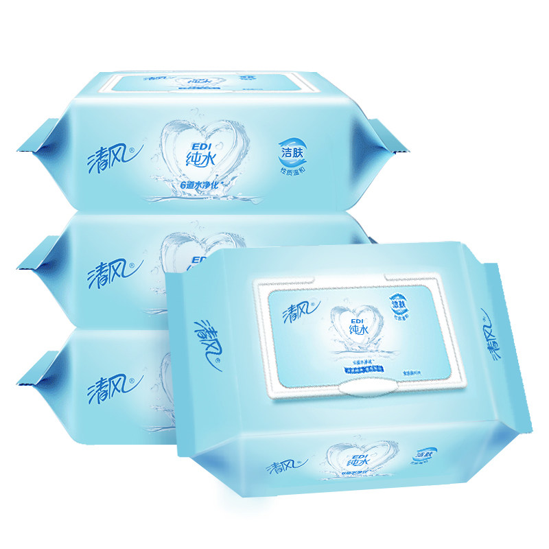 Clear Wind EDI Pure Water Wet Wipes Large Size Thickened 80 slices 4 packets Baby mouth hand wet towels Skin-friendly new old alternation-Taobao