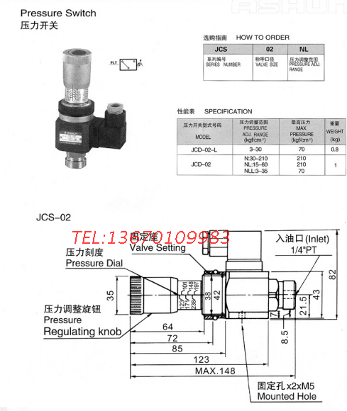 Hydraulic switch pressure relay JCS-02H JCS-02N JCS-02NL JCS-02NLL JCD-02S