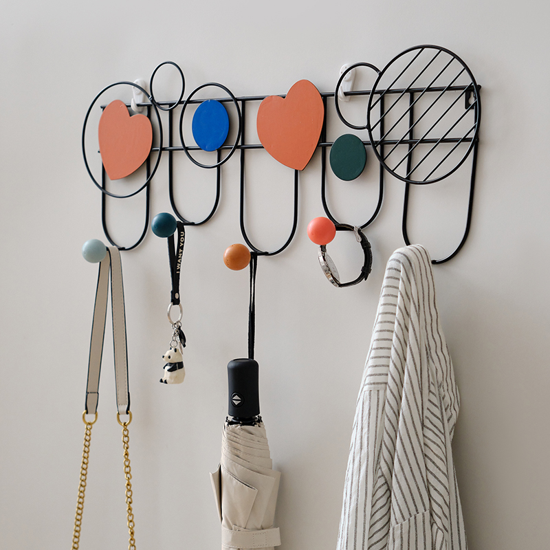 Eurostyle entry door hanging clothes hanger wall wall-mounted cloakstand Living room Home hooks free of punching iron hanging clothes hook Hyun Off-Taobao