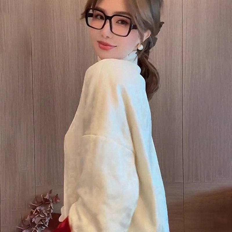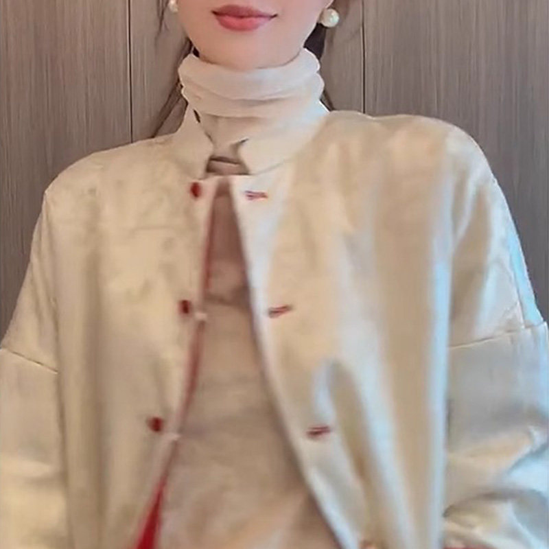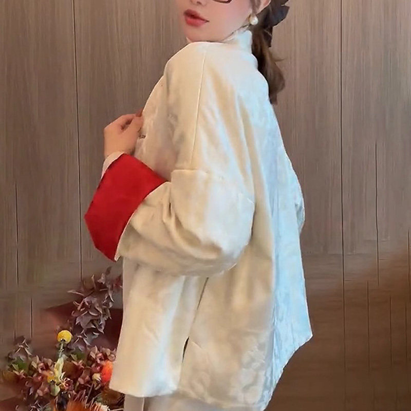 BEBE NOBLE New Chinese style disc buckle jacket cotton red jacket Women's autumn Winter high-end Chinese New Year Tang Costume Zen blouses-Taobao