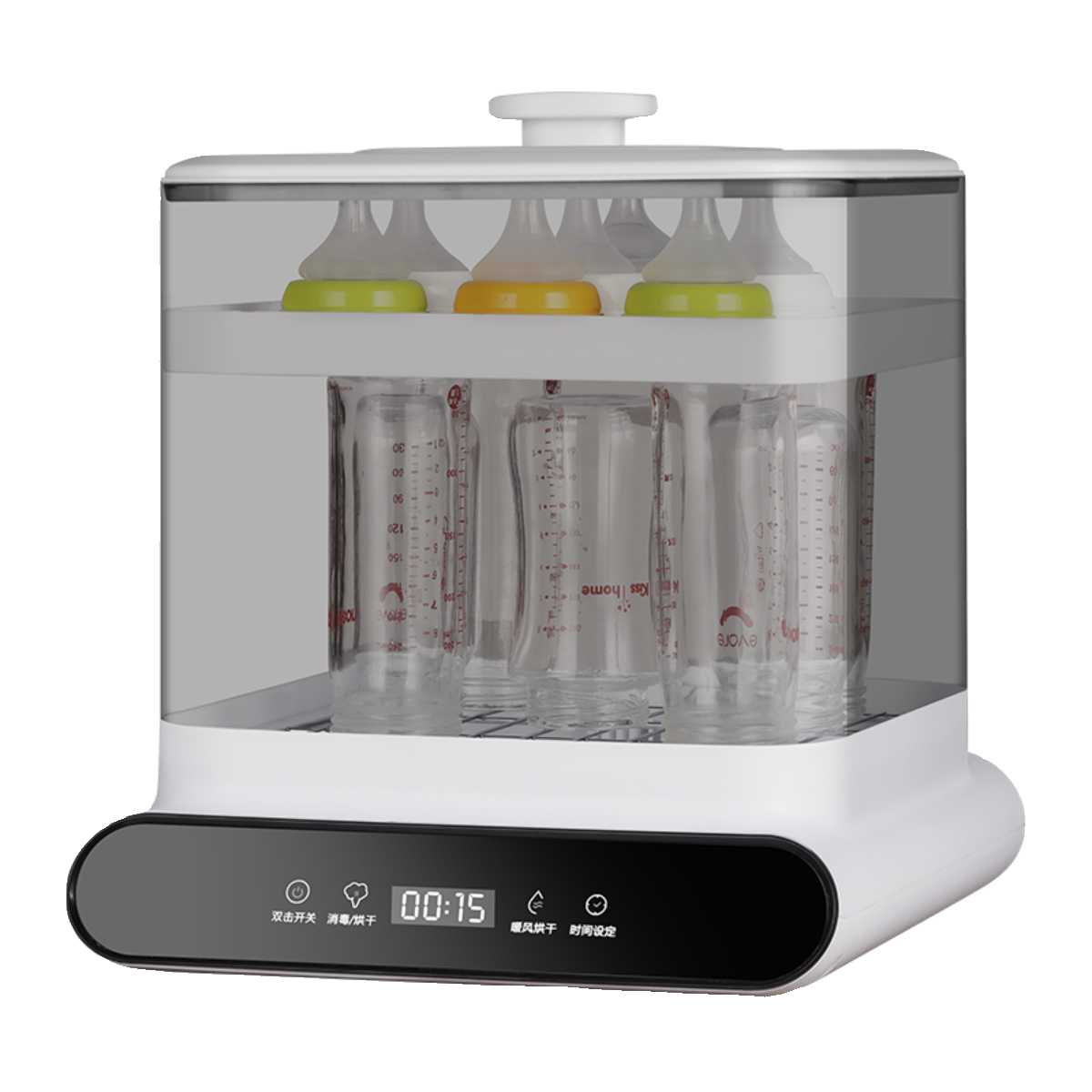 Accommodating 4 milk bottles disinfection drying for 6 bottles of bottle disinfection drying can put 6 bottles of milk bottle with warm milk disinfection drying can put 12 bottles of milk bottle disinfection drying can be put up to 12