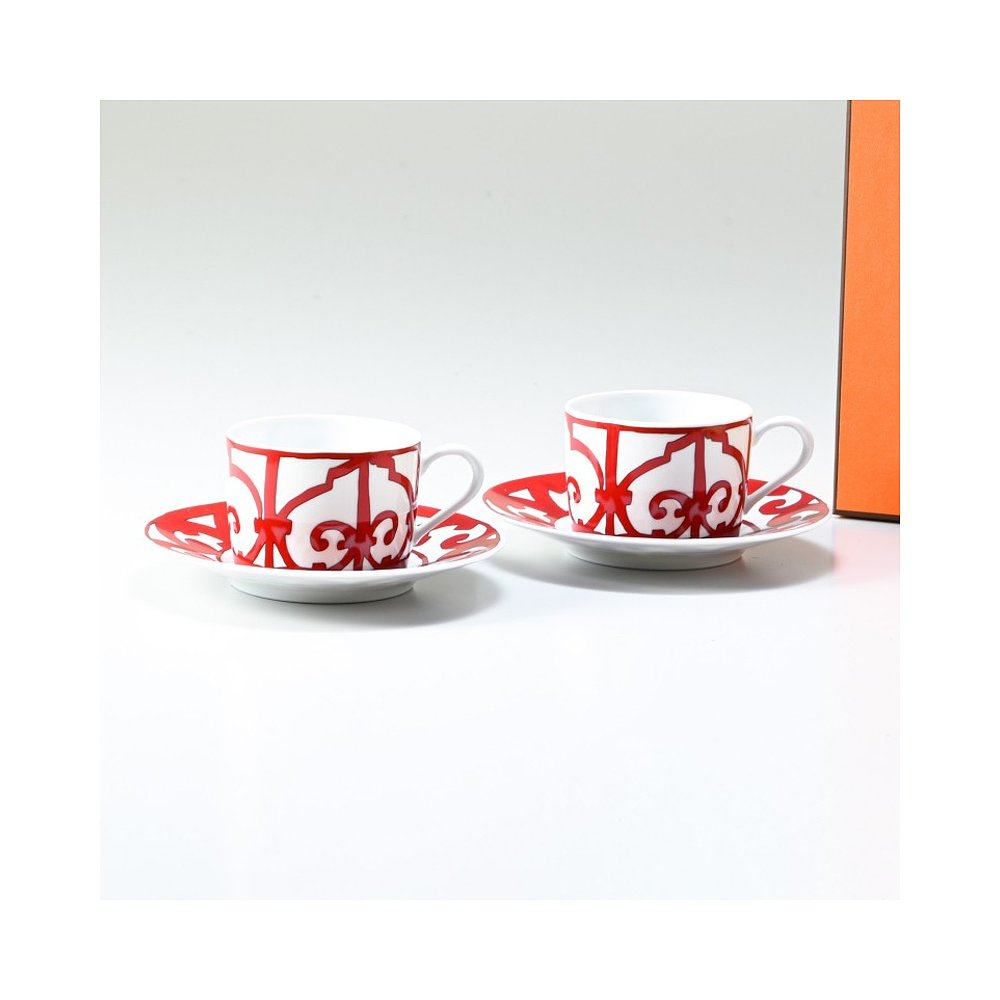 Japan direct mail HERMES Gadalquivir red 011016P2 tea cup saucer pair 160ml-Taobao