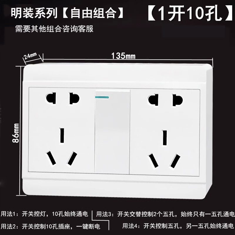 1 open 3 holes 16A (single control-switch on right) 1 open 4 holes (single control) 1 open 5 holes (single control-switch on right) 1 open 5 holes with throttle (single control-switch on right) 1 open 8