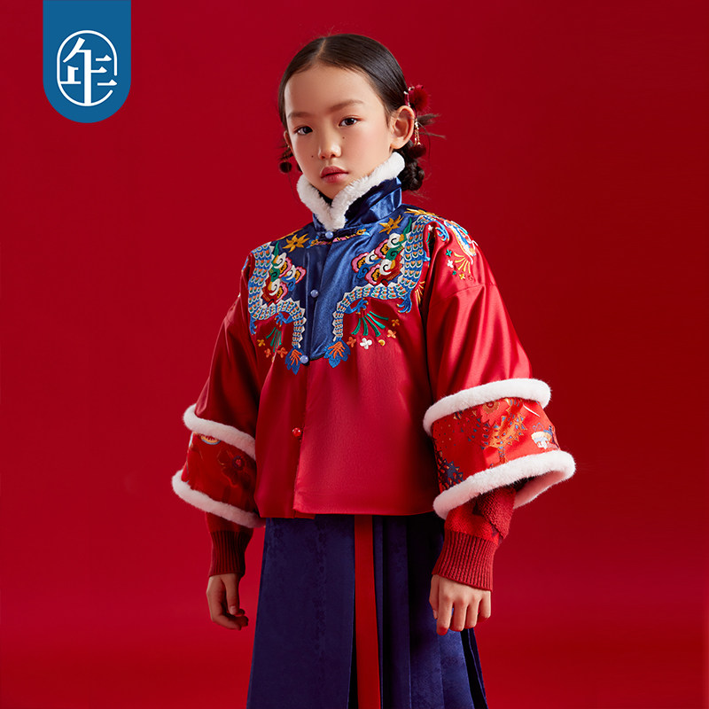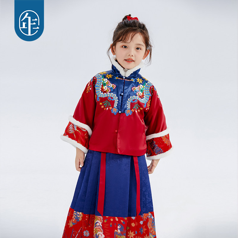 Year Clothes Boy Clothing Hanfu Girl Winter Child Mati Dress Suit Baby's New Year's New Year's Eve dress with velvet-Taobao