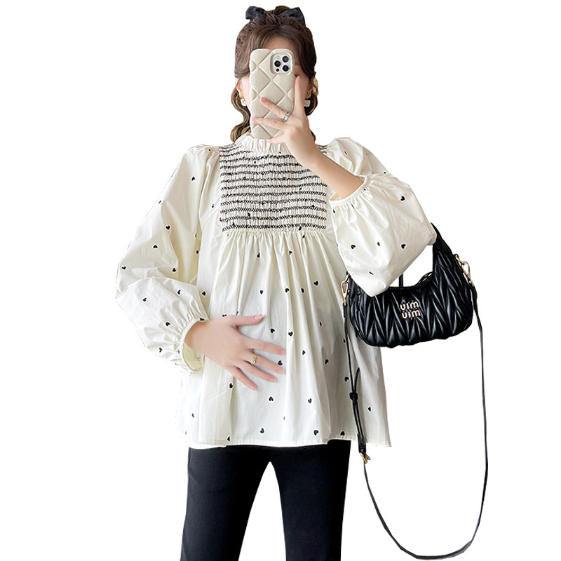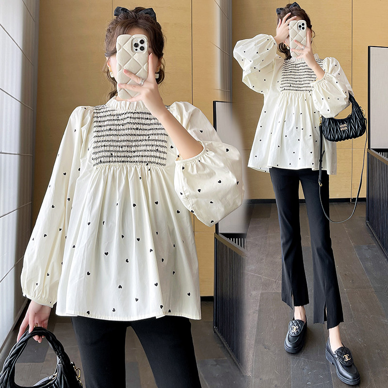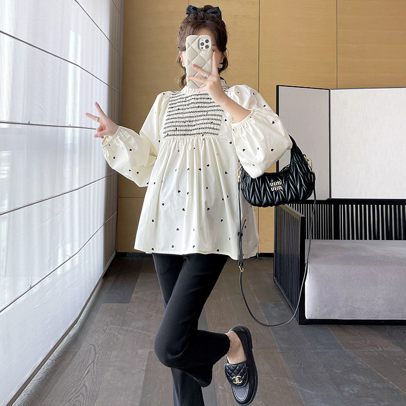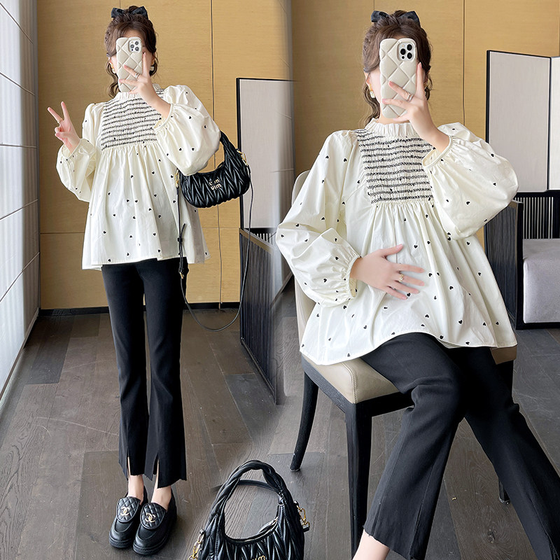 2023 pregnant women's new Korean version loose with slim, sweet and slimmer blouses blouse-shirt small crowdshirt autumn tide-Taobao