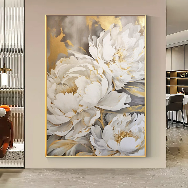 Hand-painted Oil Painting Gold Leaf Rose Xuanguan Decoration Painting Modern Light Lavish Living Room Restaurant Background Wall Large Restaurant Hanging Painting-Taobao