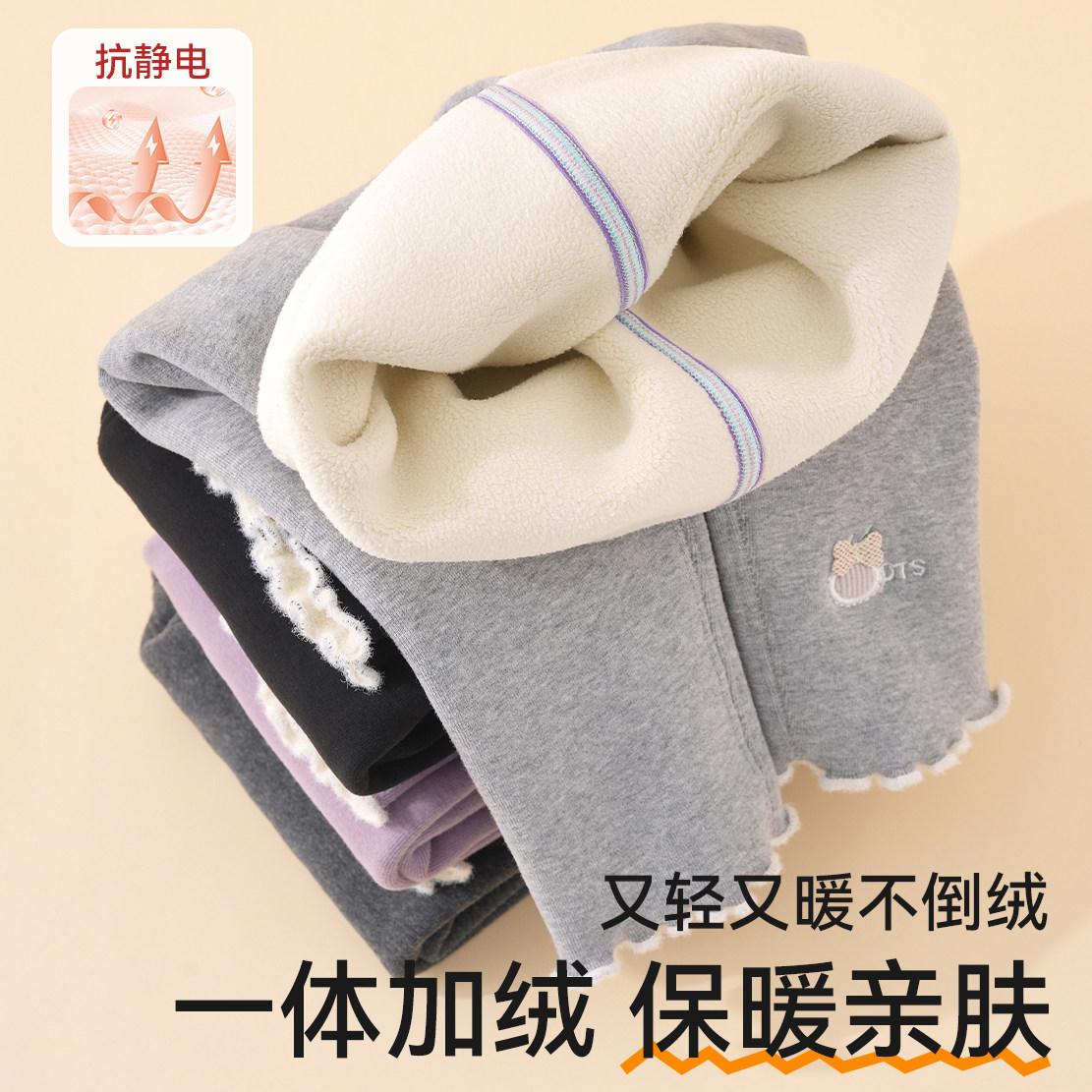 Girl's bottom pants garnter thickened outside wearing winter new baby integrated suede warm pants child foreign air long pants-Taobao