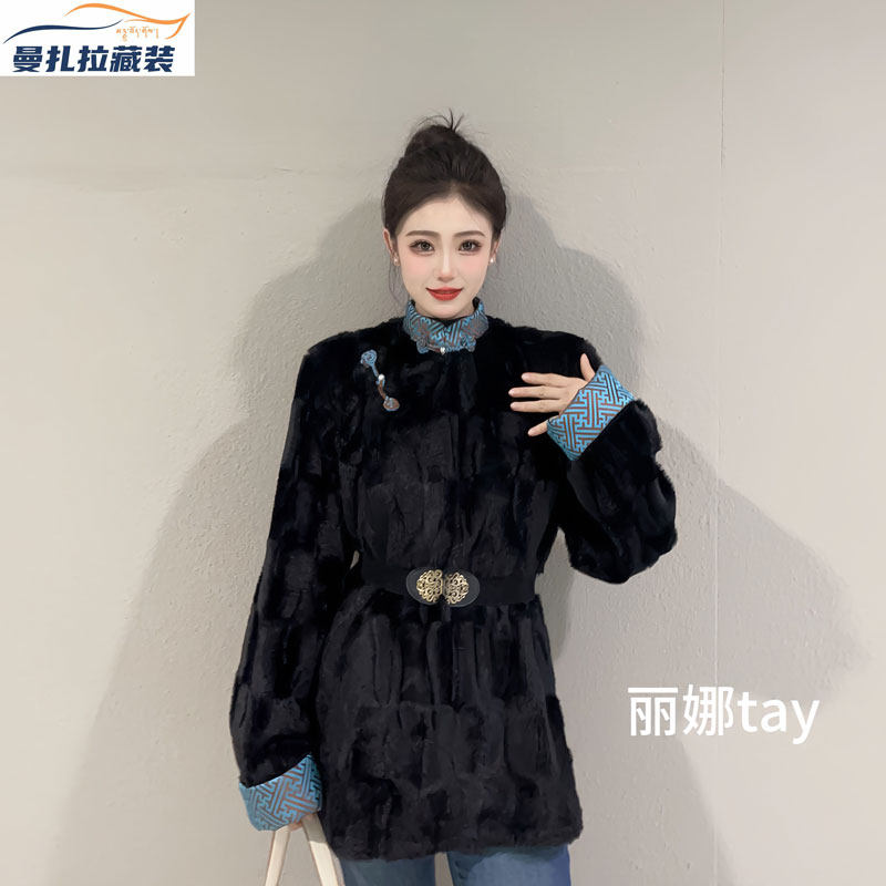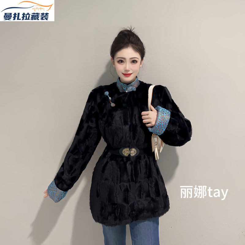 Lina Tay goddess 2023 autumn and winter new Chinese jacket female Chinese wind leather hair integrated warm hide clothes-Taobao