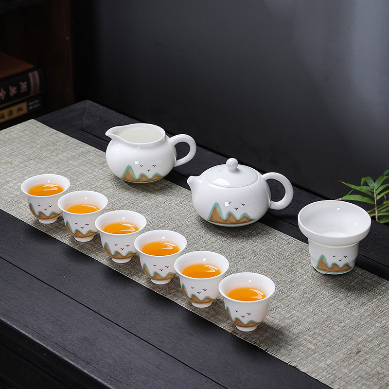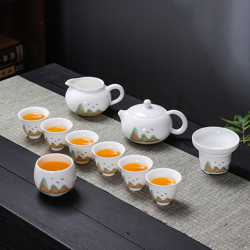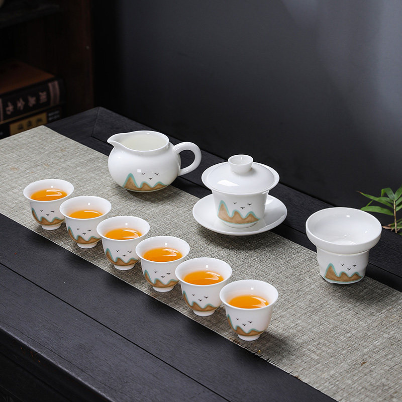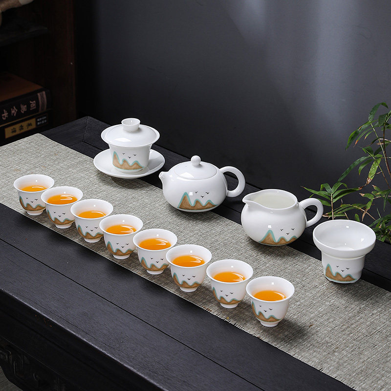 Far Mountain White Porcelain Wesisch Pot Suit (7 Heads) Far Mountain White Porcelain Wesisch Pot Suit (10 Head) Far Mountain White Porcelain West Schisch Pot Suit (11 Head) Master's Cup Far Mountain White Porcelain Cover Bowl Suit (10 Head)
