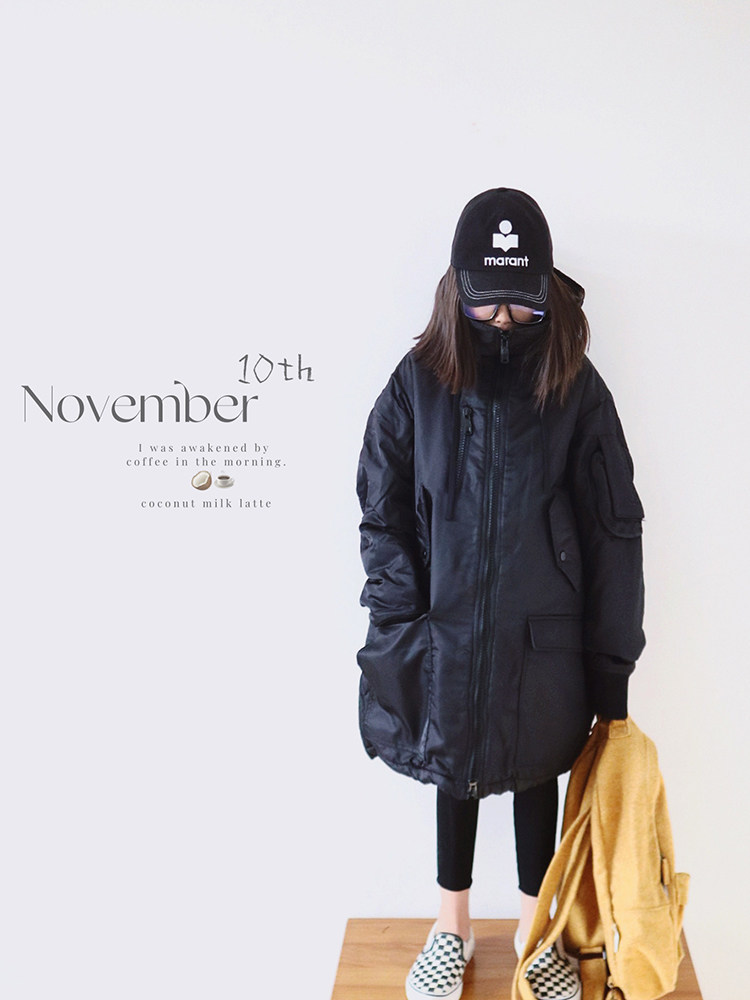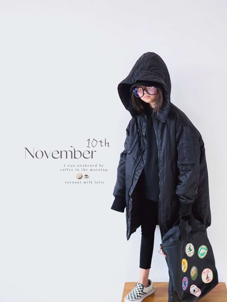 HAND E Original Child Clothing Girl Mid-Length Cotton Clothing Thickened 2024 Winter New Ocean Gas Lianhood cotton padded jacket-Taobao