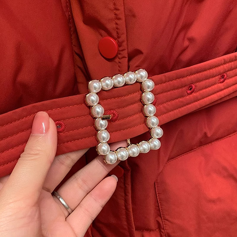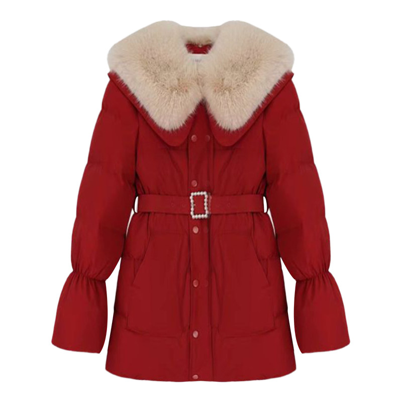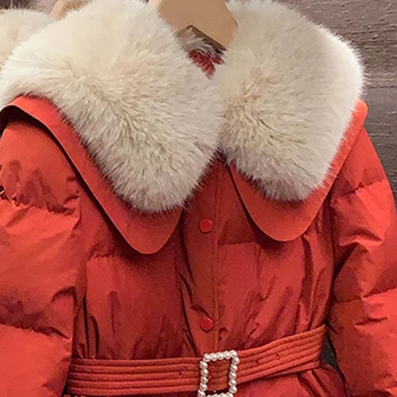 Small fragrant wind fur collar collection waist down suede woman 2023 autumn winter new New Year Christmas red thickened cotton clothes jacket woman-Taobao