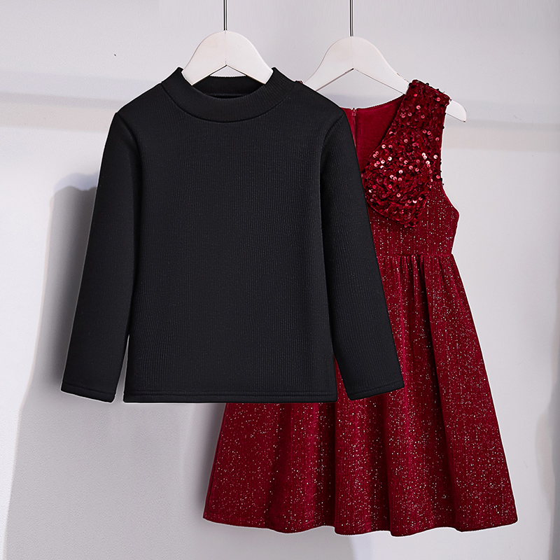 Girl Chinese New Year suit dress 2023 autumn and winter clothing new girl foreign air red undershirt waistcoat Dress Beige-Taobao