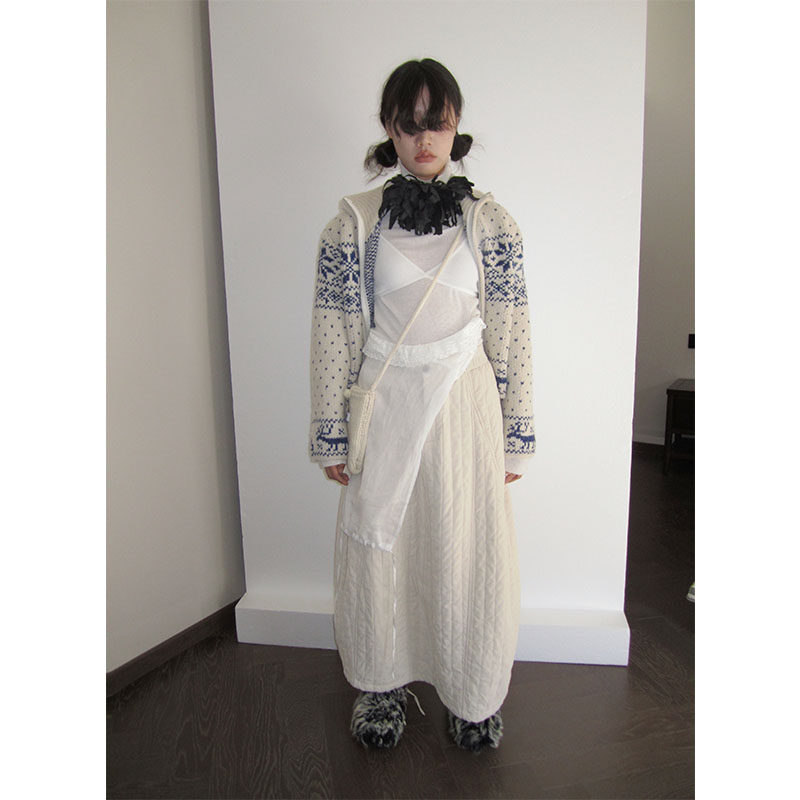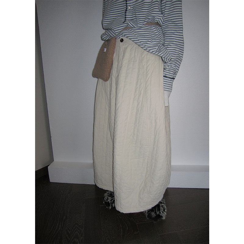 3months white laminated cotton half body dress women's day series autumn winter 2023 new loose thickened long cotton skirt-Taobao