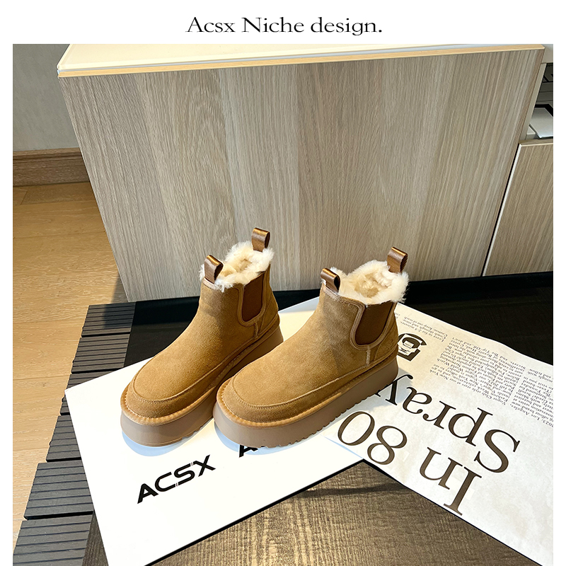 (Atea House) Warm Winter About ~ 2023 Winter New Gush Real Leather Snowy Boots Women Hairy Short Boots-Taobao